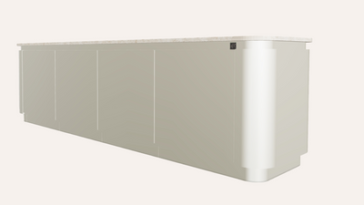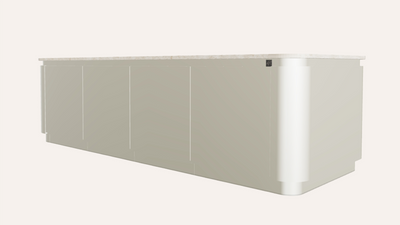 Wave biedt subtiele extra’s zoals opbergruimte, spoelbakken, een koelkast en ingebouwde verlichting. Alles geïntegreerd, voor een rustig ontwerp.