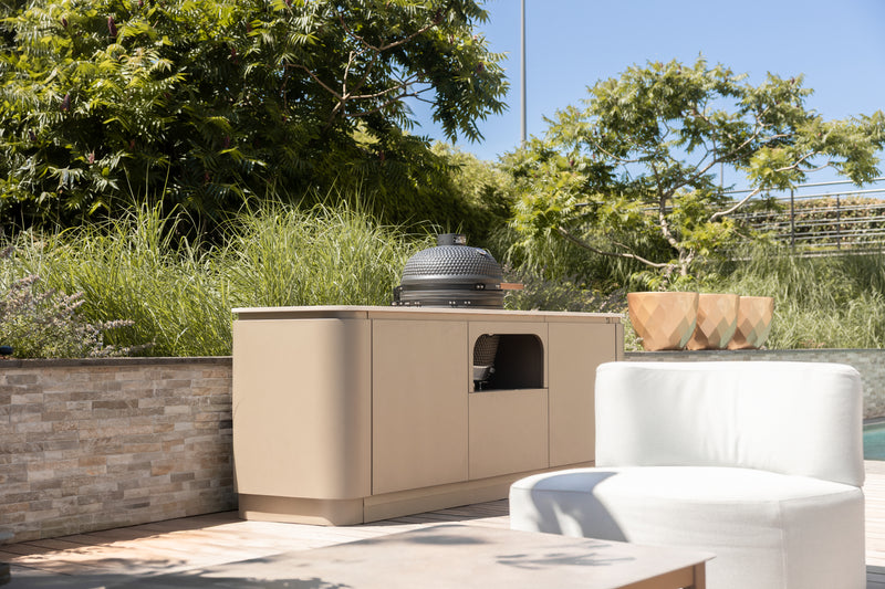 De Wave buitenkeuken is ontworpen met hoogwaardige, duurzame materialen die bestand zijn tegen alle weersomstandigheden.